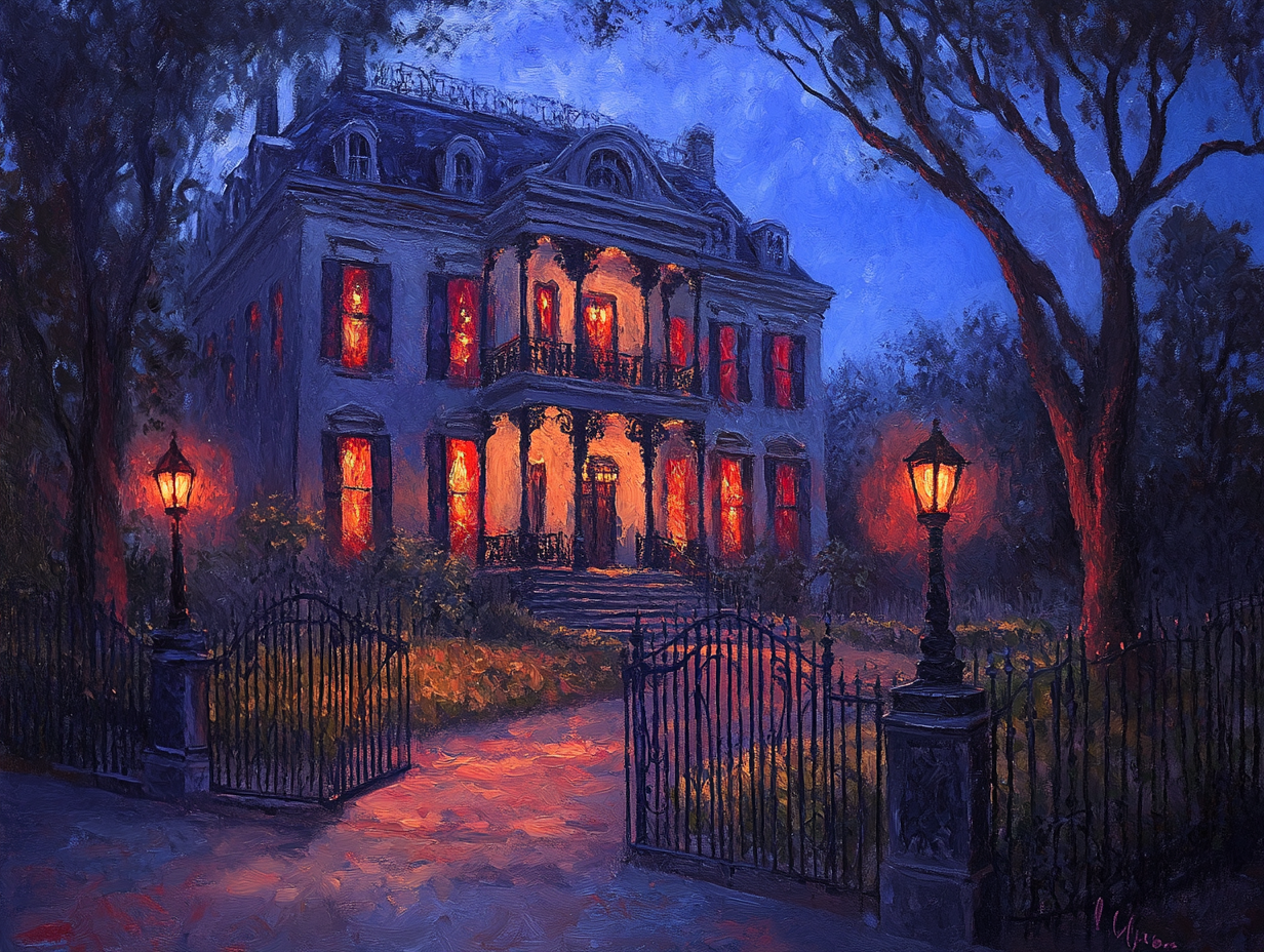 Location: A stately Georgian manor located in Savannah’s historic district, surrounded by wrought iron fences and immaculately maintained gardens.