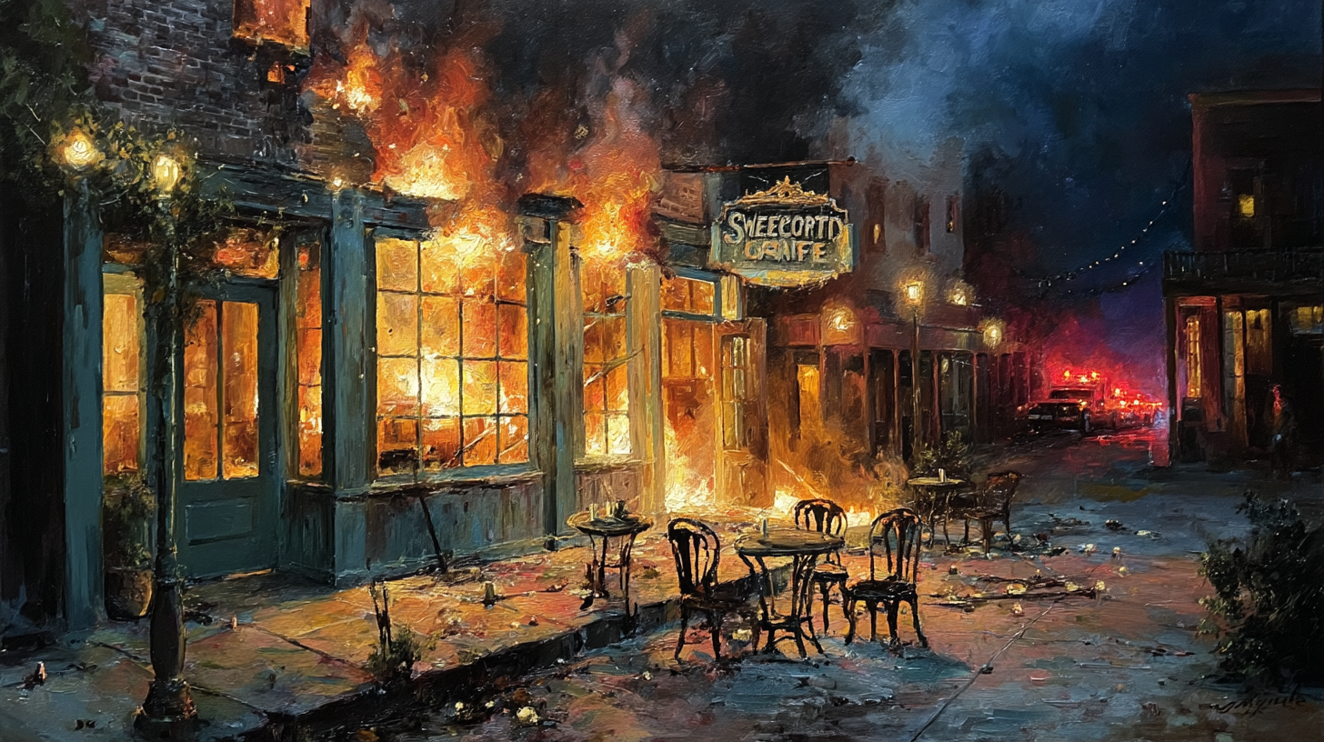 Savannah, GA — Emergency crews responded late last night to a devastating explosion and subsequent fire that tore through the beloved Sweetwater Café, located on a quiet cobblestone street in Savannah’s historic district. The blast, which occurred just after 3:30 a.m., sent flames shooting into the sky and rattled windows for blocks, causing extensive property damage to surrounding businesses and homes.